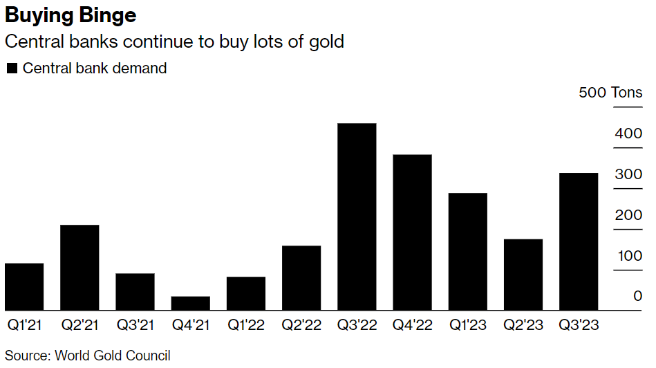The spending spree has continued this year too. Bloomberg reported that “central banks have loaded up on more gold than previously thought this year, offering crucial support to prices that have faced pressure from global monetary tightening.”